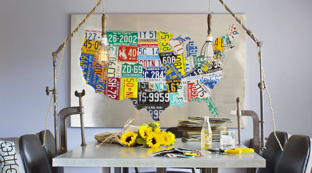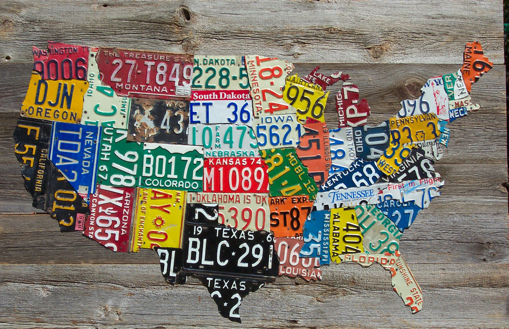 Stainless License Plate Map of the USA โ Aaron Foster Designs
