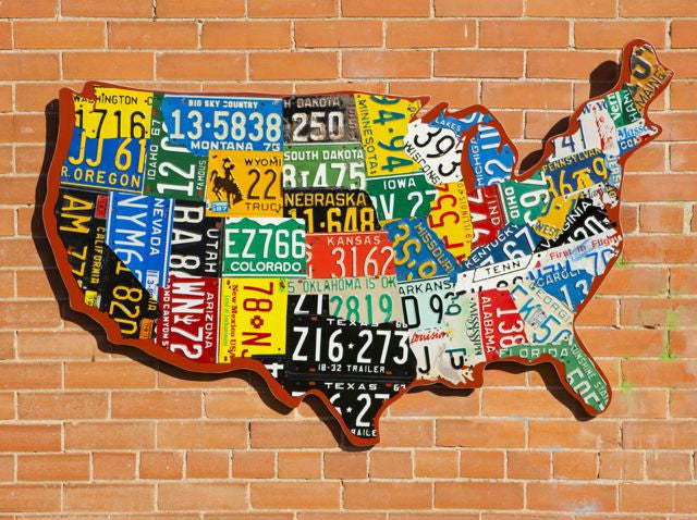 Boxed Cutout License Plate Map of the USA โ Aaron Foster Designs