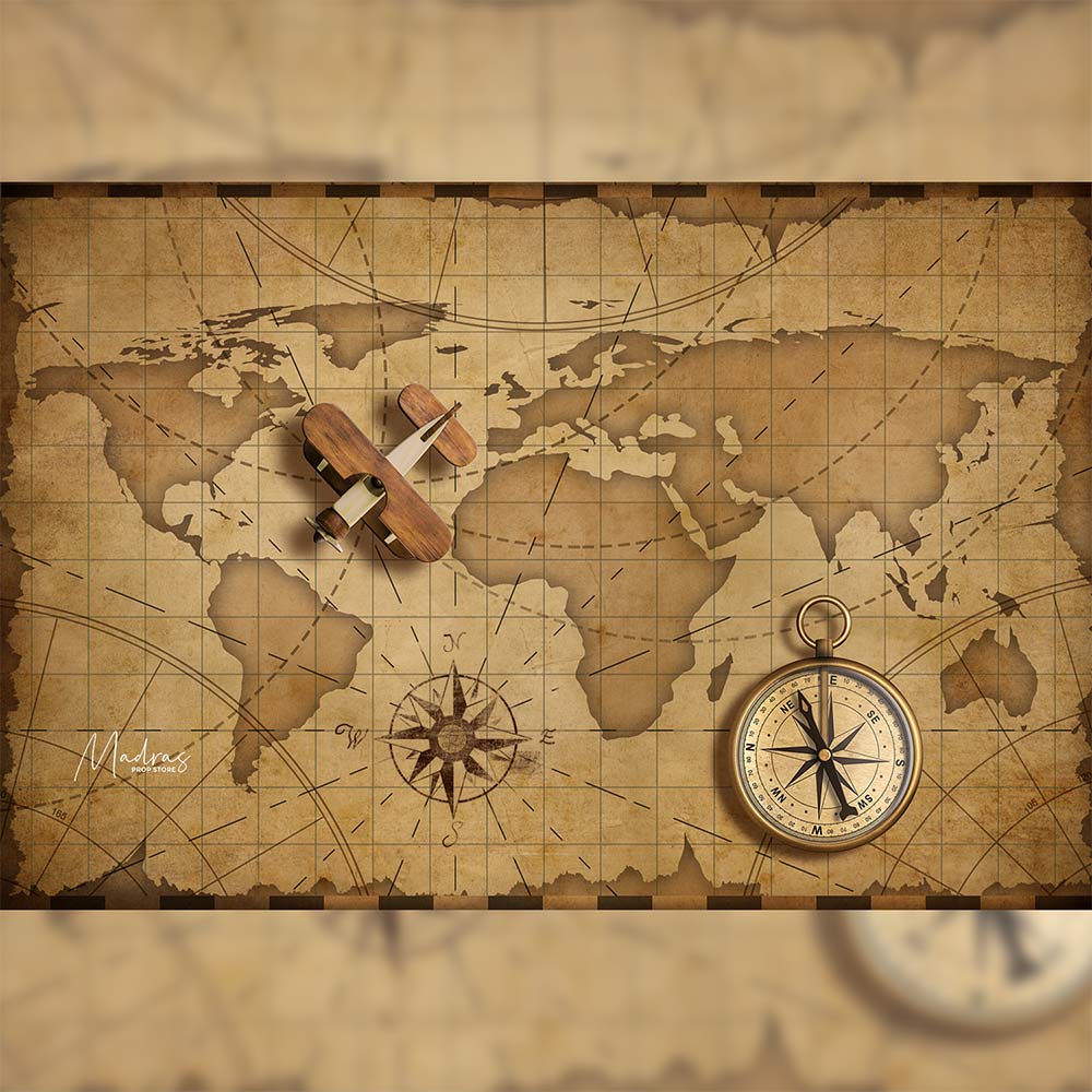 World Map Printed Backdrop Fabric 5 by 7 feet | Madras Prop